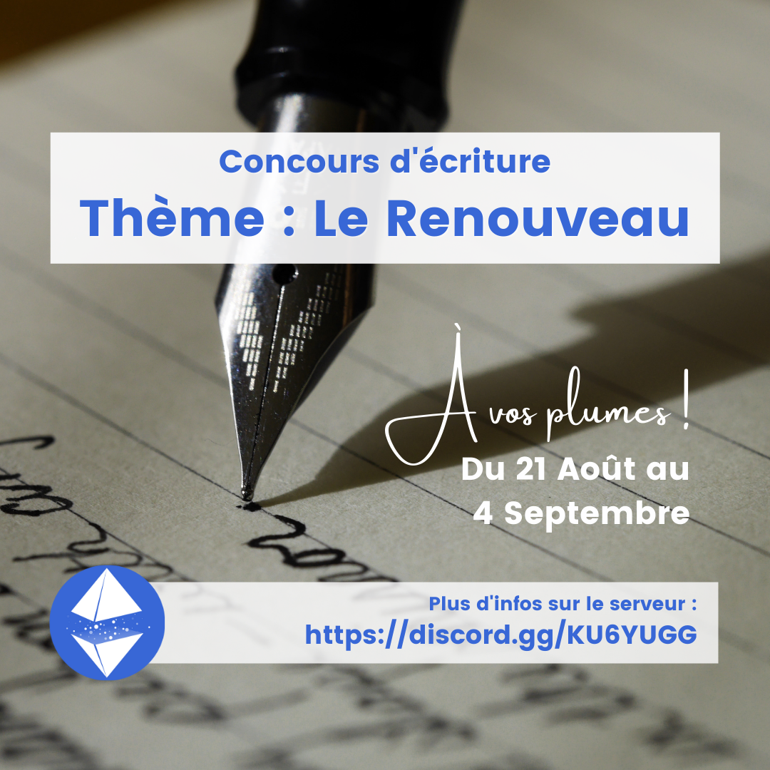 Bonsoir à toutes et à tous ! Nous espérons que vous avez tous passé un excellent été et que les étudiants sont prêts à attaquer une nouvelle année en étant frais et reposés ! Comme vous avez pu le constater, la plupart des activités du serveur et du projet en général ont été ralentis sinon arrêté cet été. Vous pouvez désormais être rassuré : c'est la rentrée du Max De Culture ! Nous commençons aujourd'hui par vous annoncer un nouvel événement : Un concours d'écriture qui a pour thème "Le renouveau" (vous comprenez bien pourquoi). Il n'y a aucune contrainte sur la forme ou le fond, ou sur la longueur de l'écrit ; il s'agit simplement de prendre plaisir à rédiger un texte. Vous pouvez dès maintenant poster vos productions dans le salon concours-ecriture ou nous les envoyer par mail à contact@le-max-de-culture.fr ou sur n'importe quel autre réseau social (https://le-max-de-culture.fr/lien) pour que nous puissions les déposer dans ce salon. Le dépôt des productions sera arrêté le 4 septembre. Le gagnant sera l'auteur du message avec le plus de réaction 👍 : il verra son texte mis en avant sur le nouveau site (disponible dans quelques mois) dans la catégorie "Événements" et sur les réseaux et il pourra visiter les archives du serveur avec les tout premiers salons ! À demain pour d'autres annonces et à très vite sur Le Max De Culture !