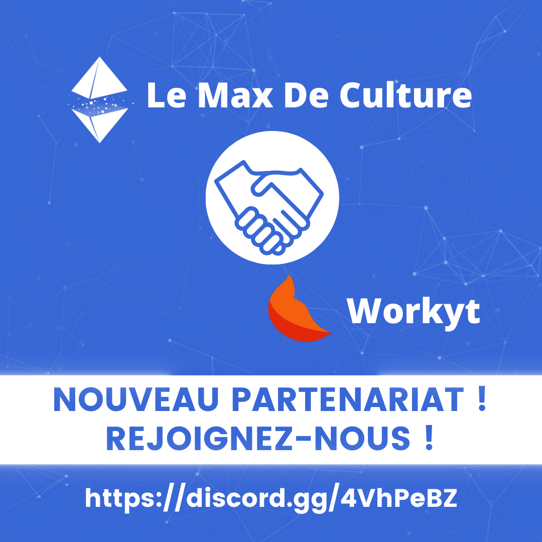 Le Max De Culture a le plaisir de vous annoncer un nouveau partenariat avec l'Association Workyt ! Il offre de nouvelles opportunités de collaboration interassociative et de mutualisation des ressources ! Pour de l'aide scolaire, rendez-vous sur https://www.workyt.fr/ ! D'autres projets en commun arriveront bientôt ! (comme une conférence en présentiel !) Un nouveau rôle pour les partenaires associatifs a d'ailleurs été créé pour l'occasion, c'est Léo qui représente Workyt sur le serveur !