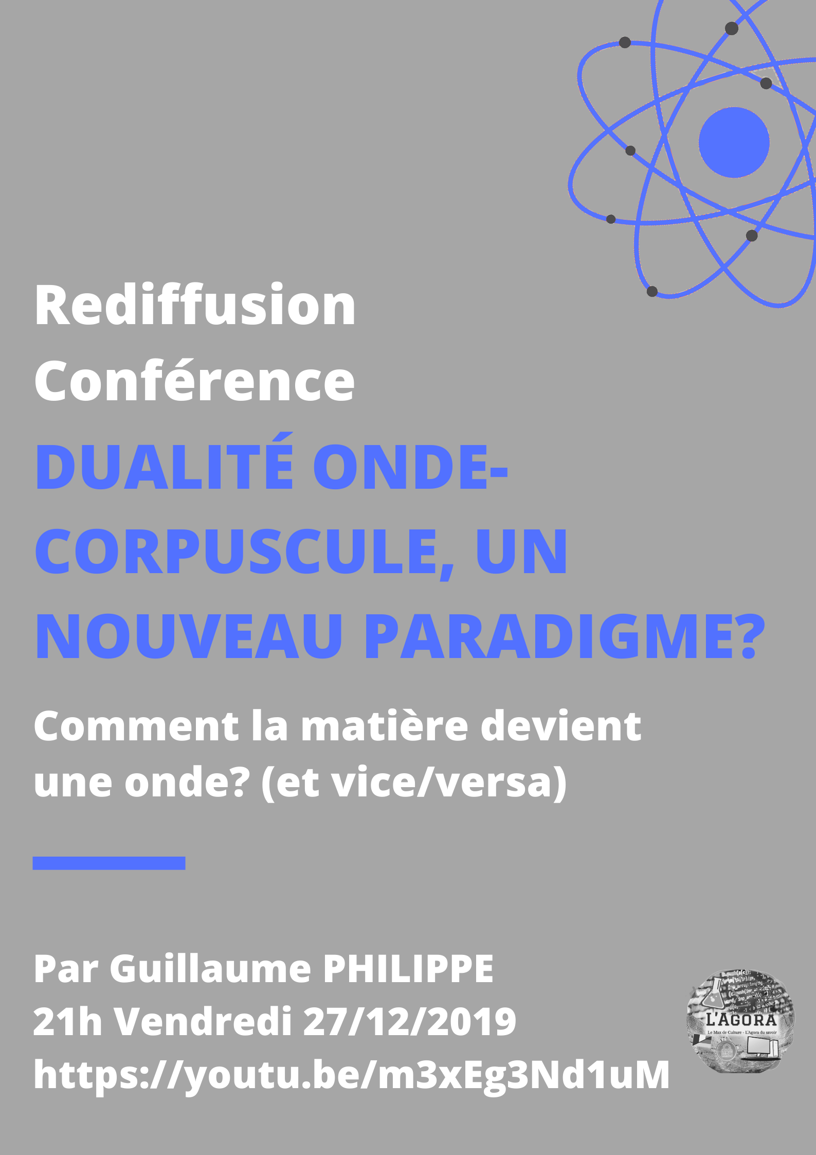 Flash info, M. Guillaume PHILIPPE, auteur du livre "Dualité onde-corpuscule, un nouveau paradigme ? - Comment la matière devient une onde ? (et vice/versa...)" vient nous présenter ses travaux en conférence spéciale samedi à 20h30 ! Nous nous excusons de l'annonce tardive, mais nous comptons fortement sur votre présence ! Merci à vous tous de bien l'accueillir et d'emmener avec vous tout votre esprit critique !