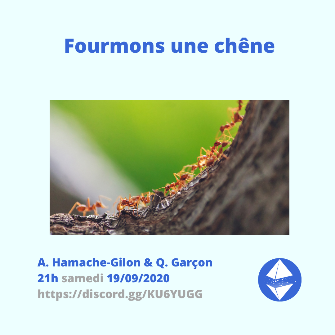 Malgré ce titre... étonnant, je vous assure qu'il s'agit en fait d'informatique et de biologie. "Savez-vous quel est le cri de la fourmi ? On vous répond, biologiquement et informatiquement." Alexis et Quentin nous éclaireront sur leurs recherches à ce sujet !