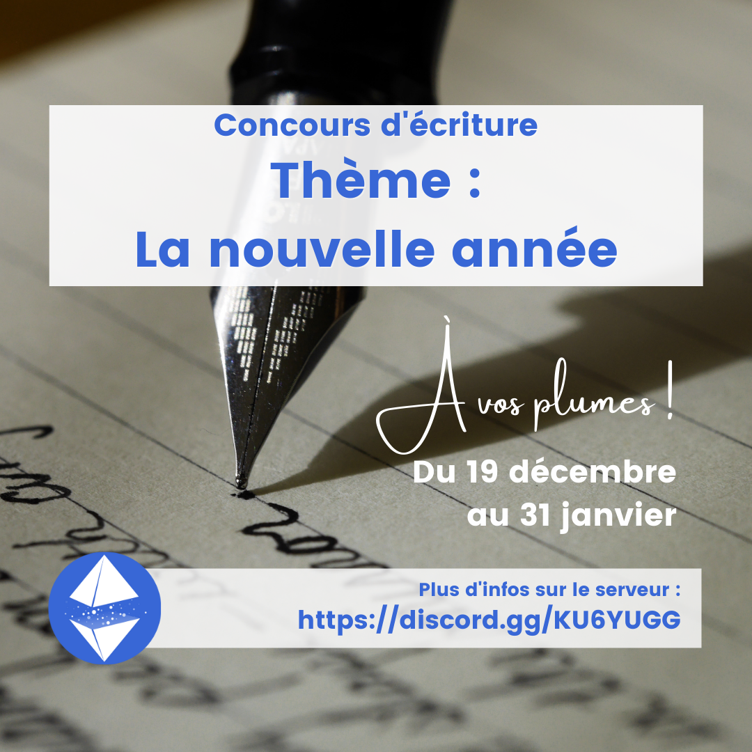 Aujourd'hui s'ouvre un nouveau concours d'écriture sur Le Max De Culture. Conformément à vos retours sur le premier concours, nous avons considérablement allongé le temps dont vous disposez pour vos rédactions (nous laissons plus d'un mois) Le thème de ce concours est : "La nouvelle année", le format est libre, la seule contrainte sur la forme est que votre écrit doit se plier au règlement du Max De Culture. Ainsi, vous avez jusqu'au 31 janvier pour participer, en postant votre participation dans le salon concours-ecriture-janvier-2022. Nous n'accepterons qu'une participation par personne, mais libre à vous de la modifier jusqu'au 31 janvier. Veillez à supprimer tout message qui n'est pas votre participation définitive. Le 31 janvier l'envoi de message sera bloqué et nous vous détaillerons le mode de scrutin. Le gagnant pourra accéder aux archives du serveur ainsi qu'à quelques éléments "best-of" et pourra bénéficier d'exclusivités avant-première concernant les prochains événements du Max De Culture. En vous souhaitant de belles fêtes de fin d'année et une bonne écriture ! A vos plumes !